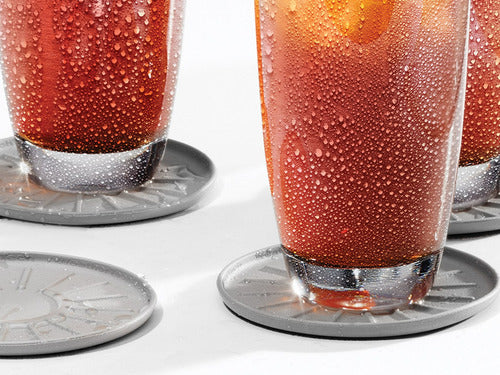 También son fáciles de limpiar: basta con limpiarlos con un paño o meterlos en el lavaplatos. Elija entre dos tamaños diferentes y cuatro colores. Cada juego contiene cuatro (4) posavasos.